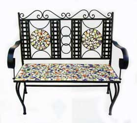 Скамья «Радуга» Артикул: МГ-Т05 Размеры: 112x45x40hx97см Кованая мебель – типичная мебель, предназначенная для загородного отдыха: на лужайках, вблизи дома, на открытых площадках, создавая атмосферу безмятежного летнего отдыха. Она не боится влаги, вина, кофе и других продуктов; легко моется без каких-либо следов; имеет интересные дизайны и разнообразную цветовую гамму.