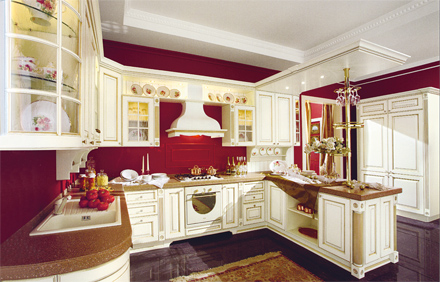 Белый лакированный ясень с золотой патиной по контуру филенки, множество декоративных элементов придают кухне "Леди" классический английский колорит. Белый цвет отражает современную концепцию кухни, придавая помещению дополнительную освещенность.