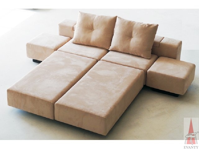 Поэтому диван имеет сотни вариантов комбинаций. Множество вариантов компоновки частей дивана позволяет использовать его, например, как угловой диван с пуфом, кровать с идеально ровным спальным местом, две отдельно стоящих софы или традиционный прямой диван.