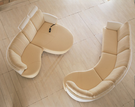 «Калинка-41» - это модульная система мягкой мебели. Модель может быть использована для домашних кинотеатров. Модель включает в себя кресло офисное, кресло боковое (левое, правое) и кресло среднее. В «Калинку-41» входит очень удобное для отдыха кресло качалка. В модели имеется два вида угловых кресел – кресло угловое 45° и кресло угловое 90°, что позволяет разнообразить геометрию комплектования уголка. В модели используется два вида шезлонга с различными видами трансформации: • При нажатии кнопки на пульте, спинка начнет отклоняться назад, трансформируясь в ровное место для удобного и комфортного отдыха. Используется механизм откидывания спинки назад. • При нажатии кнопки на пульте, спинка и сиденье начнут выдвигаться вперед, это придает лучшее комфортное место для отдыха. Используется механизм выездного сиденья. В модели имеется боковой малогабаритный диван. По желанию клиента, в модель может быть добавлен средний малогабаритный диван. Кресла и диваны могут быть снабжены подголовниками, что увеличивает комфортность модели. Модель имеет очень удобный маленький пуф, который может служить подставкой под ноги во время отдыха. «Калинка-41» комплектуется оригинальными металлическими ножками. Мягкие элементы сидений состоят из пружинных блоков и выполнены из высокоэластичного пенополиуретана повышенной комфортности «ДЕКАФОМ». Металлическая пружина-змейка устанавливается на каркас под мягкие элементы, обеспечивая комфорт и надежность.