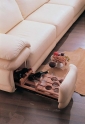 «Калинка-46» - модульная модель VIP класса, сочетающая в себе максимальный комфорт и презентабельный вид. Модель включает в себя боковое кресло левое и правое, среднее кресло и среднее кресло с эл. баром, среднее кресло с плавающей спинкой, диван, диван боковой левый и правый, средний а также с трансформерами «Aladino» и «Sedaflex». Модель имеет угловое кресло, подголовник. Подлокотники могут быть: с выкатным баром, с коробкой, с книжной полкой и с выкатной книжной полкой. Чтобы разложить среднее кресло с плавающей спинкой И1С, нужно сиденье кресла сдвинуть вперед за счет упора ногами в пол (или за счет упора руками в соседние модули). Получается более удобное положение для отдыха. Обратное действие – сдвинуть сиденье кресла назад так же за счет упора ног. Чтобы разложить кресло-кровать Л1О c трансформером «Opla», нужно сложить спинку на сиденье, затем за петлю сзади потянуть на себя и опустить спинку с сиденьем на пол. Для складывания кресла-кровати нужно переднюю часть кровати поднять до полного складывания и спинку поднять в вертикальное положение. При раскладывании диван-кровати с механизмом «Sedaflex», во избежание деформи-рования обивки дивана, нужно приподнять подушку спины за петлю вверх. Для возврата спинки в исходное положение, нужно отвести подушку спинки в верхнее крайнее положение и сложить. Диван с механизмом «Aladino» имеет ряд преимуществ: - высокое спальное место - матрац повышенной мягкости - подушки сиденья и спины убираются под спальное место. Подушки спины выполнены из материала «Холлофайбер». Эластичная сжимающаяся структура волокна «Холлофайбер» является мягкой, дышащей, которая не «упаривает» тело при длительном использовании. Антиаллергенные свойства, возможность легкой стирки, не впитывание посторонних запахов, с условиями повышенной мягкости создают условия комфортной работы и отдыха. «Холлофайбер» быстро восстанавливает свою форму после смятия, имеет высокую стойкость к сохранению своей формы с течением времени. В модель входит среднее кресло с электробаром. Бар выполнен из древесины твердо-лиственных пород (натуральный ясень, возможны 6 цветов тонировки). Бар с электроприводом открывается легким нажатием сенсора, расположенного на верхней части спинки кресла. При открывании бара, поднимается подушка кресла, включается подсветка, из бара на подушку сиденья кресла откидывается столик. При закрывании бара (когда подсветка выключена, бар закрыт) можно использовать не до конца опущенную спинку как подголовник. Мягкость дивана создает высокоэластичный пенополиуретан «Декафом». Подушки сиденья всех элементов в модели выполнены из эластичного пенополиуретана, предназначенного для использования в мебельной и автомобильной промышленности, эксплуатируемых при температурах от минус 40° до плюс 80° С. Металлическая пружина-змейка устанавливается на каркас под мягкие элементы, обеспечивая комфорт и надежность.